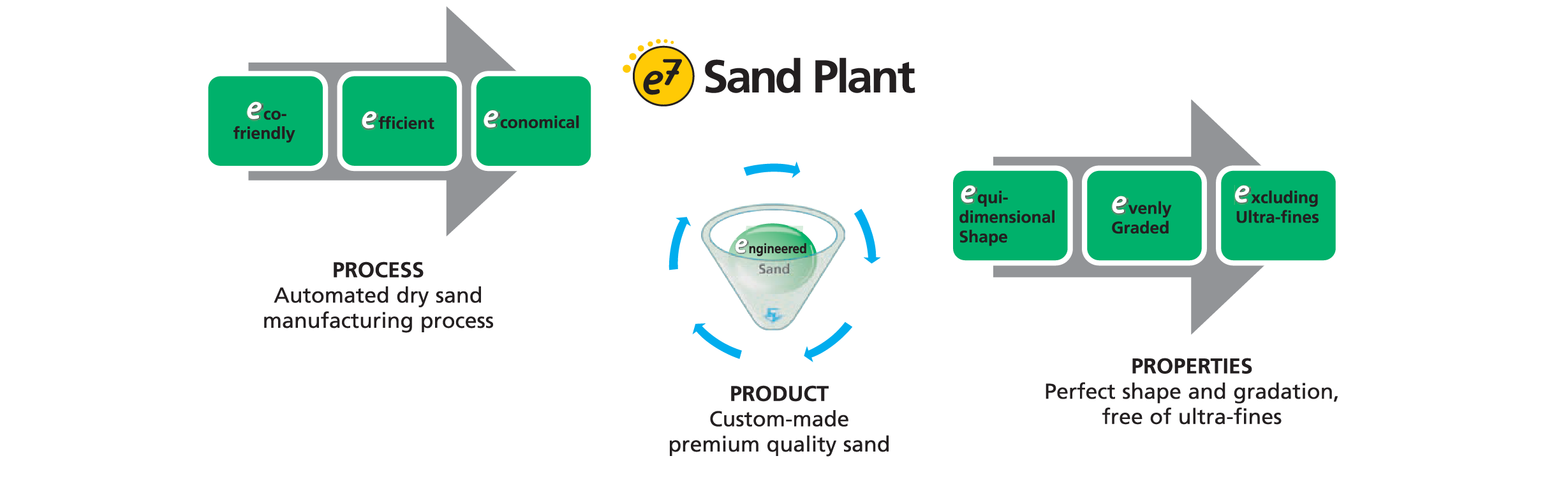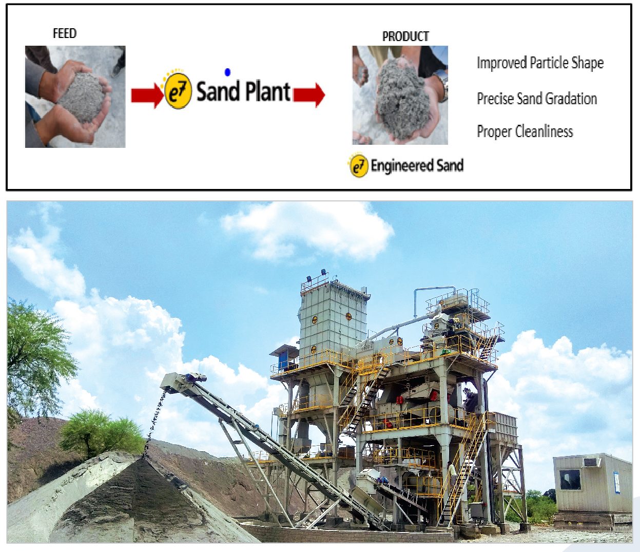 L&T e7 Sand Plant is an advanced ,fully automated & integrated system that manufactures premium quality sand from Fine Aggregate to use as a complete replacement for natural sand in concrete and plastering application which provides perfect combination of size, shape, gradation and purity of end product.