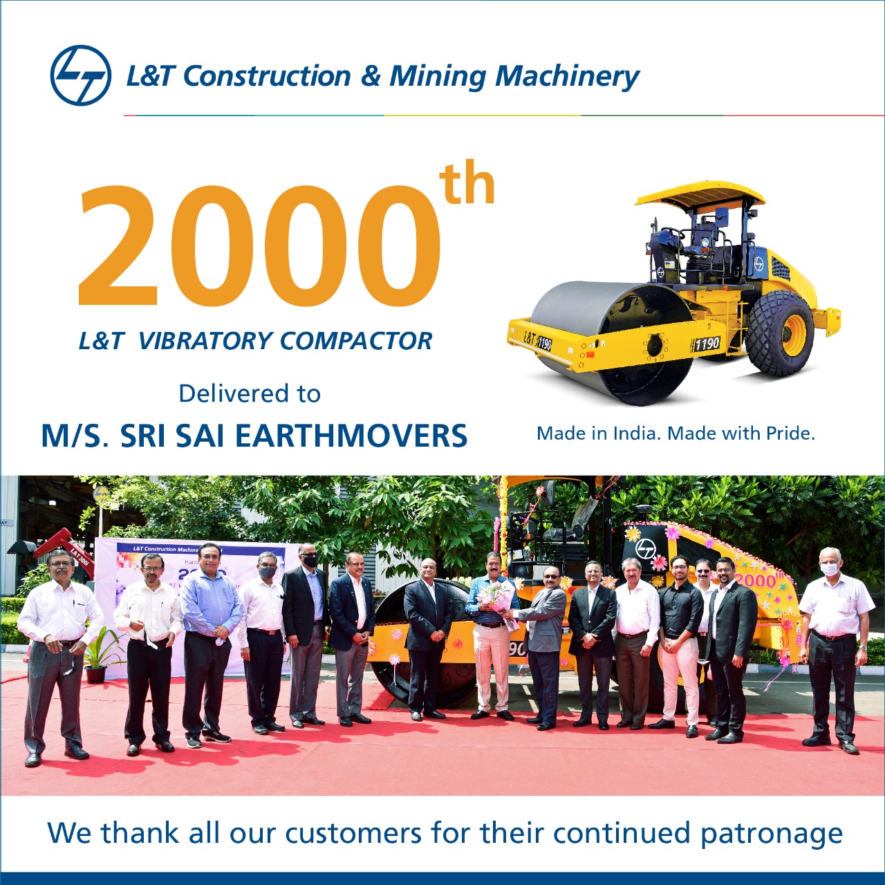 Larsen & Toubro Construction equipment has successfully rolled out the 2000th vibratory compactor in India. We have delivered the milestone machine to Mr. Raghupathy of M/s. Sri Sai Earthmovers, Bangalore, Karnataka.